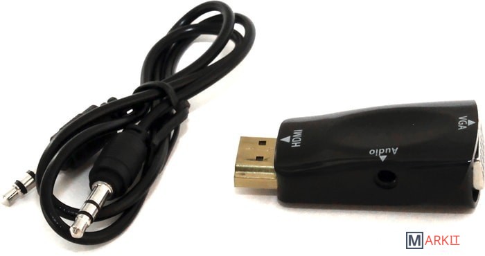 Переходник для вывода изображения со звуком на монитор или проектор с VGA-входом с компьютера или ноутбука с HDMI-выходом.