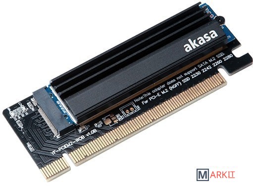 Адаптер для M.2 SSD с радиатором. Поддерживает PCI NVMe. Размеры M.2 - 2230, 2242, 2260, 2280.