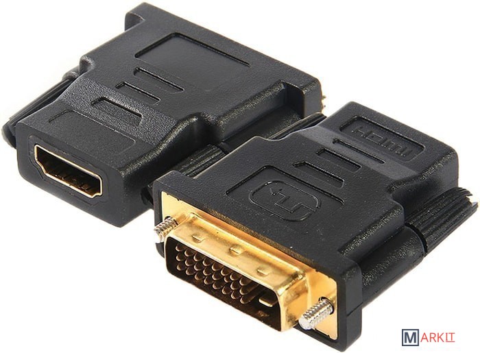 Данный переходник конвертирует сигнал с видеовыхода DVI в сигнал HDMI, позволяя подключить кабель с разъемом HDMI.
