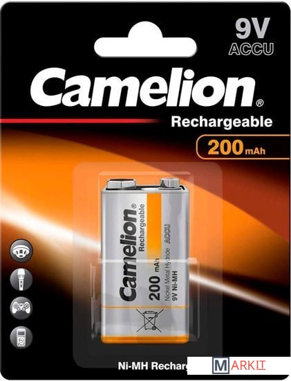 Markit » Батарейки, аккумуляторы, зарядные » Аккумулятор Camelion HR6F22 200 mAh NH-9V200-BP1