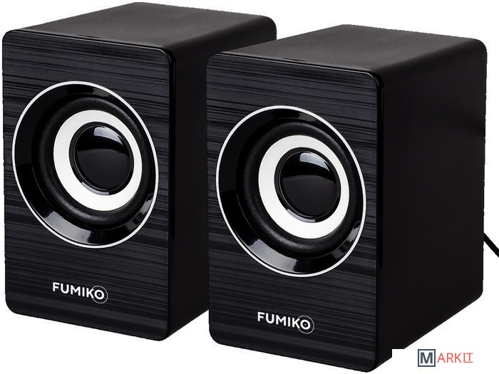 Колонки 2.0 - отличное решение для каждого, кому важен качественный и чистый звук. Модель FUMIKO ALASKA отлично подходит как для прослушивания музыки, так и для просмотра фильмов. Компактное устройство особенно пригодится владельцам ноутбуков, встроенные динамики которых не способны выдать достаточную мощность и громкость. Новейшие технологии в производстве комплектующих позволили достичь хорошего уровня громкости и чистоты звучания. С источником звука они соединяются с помощью кабеля с разъемом 3.5 мм Jack. Питание происходит от USB - больше никаких лишних проводов. Любимая музыка в громком звучании теперь всегда будет с вами. Длина кабеля позволяет подключить колонки к разъемам на задней панели персонального компьютера.