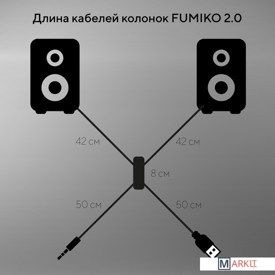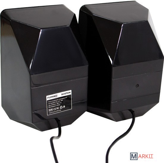 Колонки 2.0 - отличное решение для каждого, кому важен качественный и чистый звук. Модель FUMIKO BOSTON отлично подходит как для прослушивания музыки, так и для просмотра фильмов. Компактное устройство особенно пригодится владельцам ноутбуков, встроенные динамики которых не способны выдать достаточную мощность и громкость. Новейшие технологии в производстве комплектующих позволили достичь хорошего уровня громкости и чистоты звучания. С источником звука они соединяются с помощью кабеля с разъемом 3.5 мм Jack. Питание происходит от USB - больше никаких лишних проводов. Любимая музыка в громком звучании теперь всегда будет с вами. Длина кабеля позволяет подключить колонки к разъемам на задней панели персонального компьютера.Общая длина провода 105 см