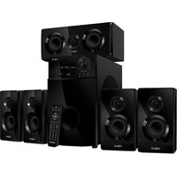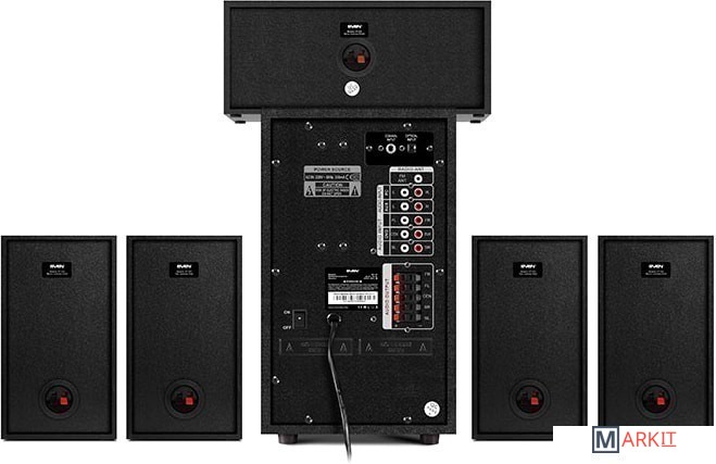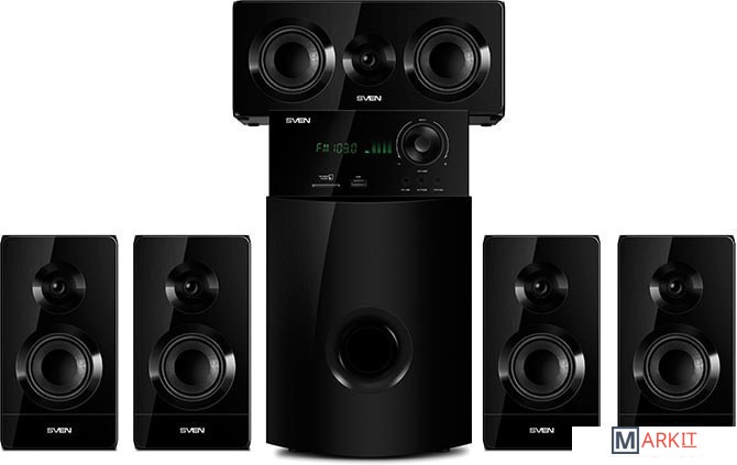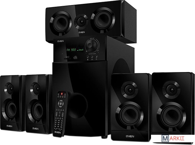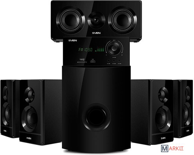 Акустическая система 5.1 SVEN HT-210 воспроизводит аудио через Bluetooth, радио, USB-накопители и карты памяти. Детально проработанные высокие и средние частоты колонок SVEN HT-210 не дадут потеряться тонким нюансам музыкальных композиций, а 176 мм динамик сабвуфера обеспечивает глубокий бас. Акустику можно подключить к ТВ через оптический или коаксиальный вход. Органы управления акустикой вынесены на переднюю панель. Модель оснащена дисплеем и пультом дистанционного управления. Компоненты акустики можно разместить не только на полу, но и на стене.