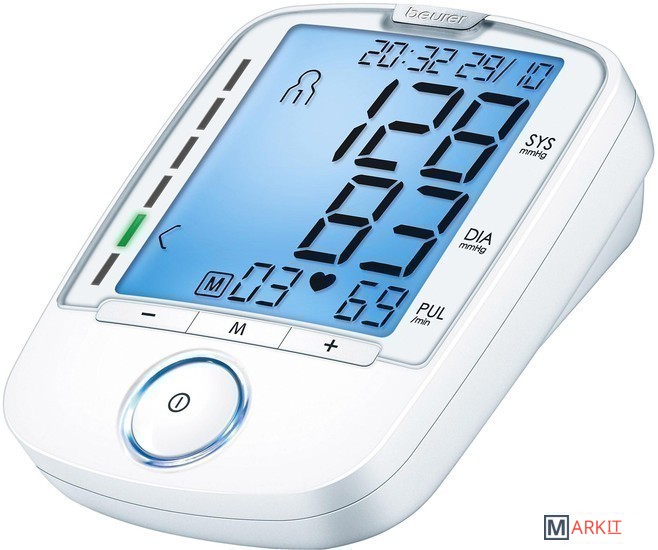 Автоматический тонометр из комфортной линейки с большим дисплеем с голубой подстветкой. В комплекте поставки манжета на плечо 22-35 см. Питание от батареек. Автоматическое определение аритмии (сбоя ритма). Производство - Германия. Сертификат СИ (средства измерения) и Регистрационное удостоверение МЗ РБ.