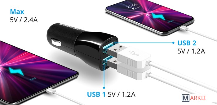 Автомобильный адаптер питания USB2 USB-порта для зарядки устройствВозможность заряжать сразу два устройства от бортовой сети автомобиля.Защита от перегрузки и короткого замыканияПомогает обезопасить заряжаемое устройство в случае возникновения каких-либо проблем при зарядке.Подходит для любого автомобиляДля подключения к питанию требуется стандартный автомобильный прикуриватель.Незаменим для зарядки различных типов устройствПодходит для планшета, смартфона, электронной книги и других устройств.