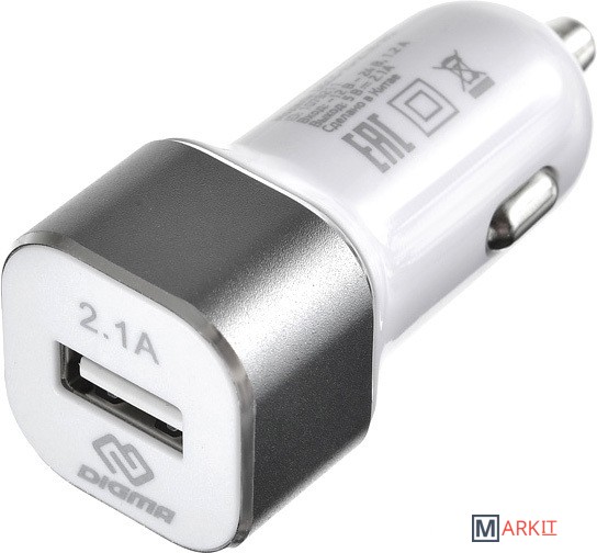 Markit » Зарядные устройства » Автомобильное зарядное Digma DGCC-1U-2.1A-WG