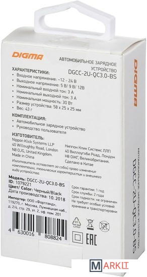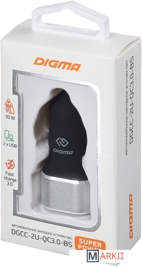 Markit » Зарядные устройства » Автомобильное зарядное Digma DGCC-2U-QC3.0-BS
