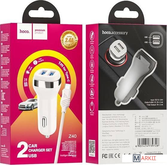 Markit » Зарядные устройства » Автомобильное зарядное Hoco Z40 Superior Type-C (белый)