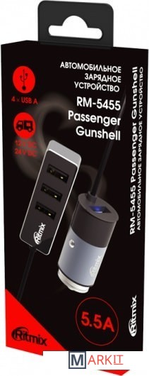 Markit » Зарядные устройства » Автомобильное зарядное Ritmix RM-5455 Passenger Gunshell