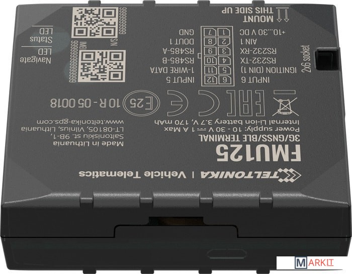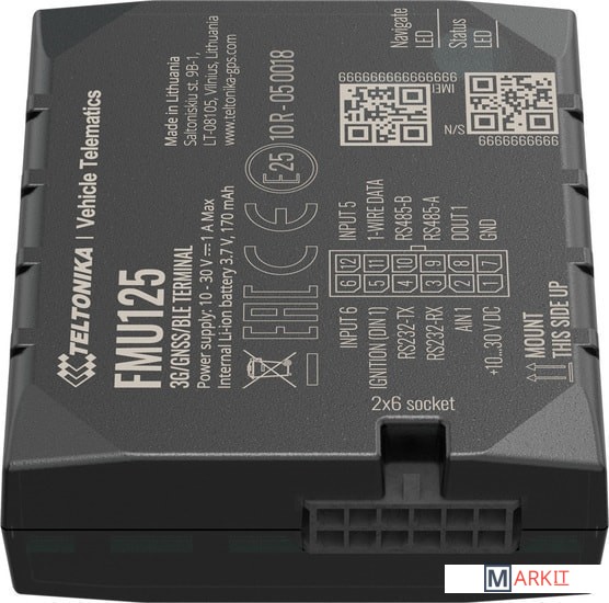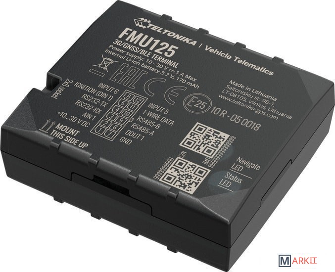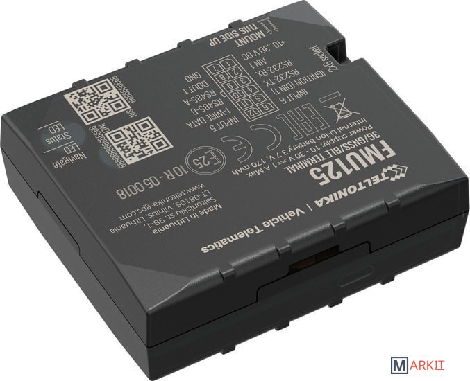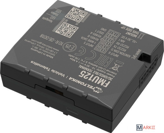 - Teltonika FMU 125 — усовершенствованный трекер, поддерживающий сети 3G / GSM, с интерфейсами RS485 / RS232 и резервной батареей.- FMU125 - это компактный профессиональный терминал слежения в режиме реального времени с возможностью подключения GNSS и 3G/GSM. Устройство оснащено модулями GNSS/Bluetooth и 3G, внутренней GNSS и 3G антеннами.- Трекер Телтоника FMU 125 имеет интерфейс данных RS485 / RS232, который дает возможность подключения различных сторонних внешних устройств. Он подходит для решений, где требуется определение местоположения удаленных объектов: управление автопарком, компании по прокату автомобилей, такси, общественный транспорт, логистические компании, личные автомобили или контролировать состояние двигателя, управлять дверью грузовика и т. д.