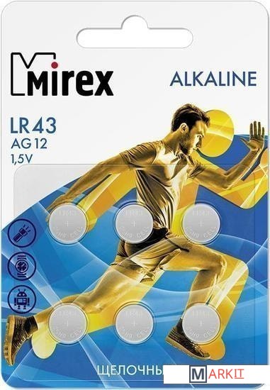 Markit » Батарейки, аккумуляторы, зарядные » Батарейка Mirex LR43 (AG12) блистер 6 шт. 23702-LR43-E6