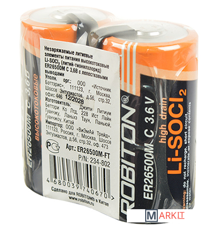 Markit » Батарейки, аккумуляторы, зарядные » Батарейка Robiton C ER26500 высокотоковые 2 шт. (Пленка) [ER26500M-SR2]