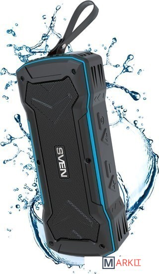 Колонка SVEN PS-220 выполнена во влагоустойчивом корпусе с ремешком для переноски. Два встроенных динамика обеспечивают 10 Вт выходной мощности. Колонка имеет встроенное FM-радио, способна проигрывать музыку с карт памяти microSD, USB флешек и подключаться к источнику звука по проводу и без. По Bluetooth акустика держит уверенную связь с мобильным устройством на расстоянии до 10 метров.