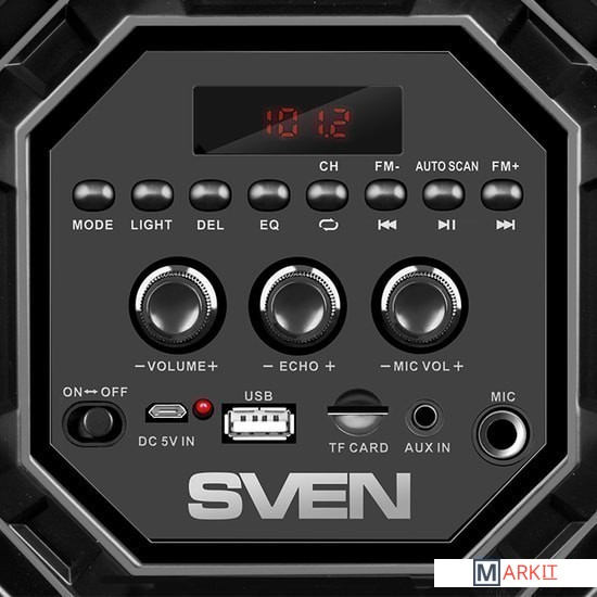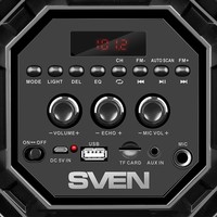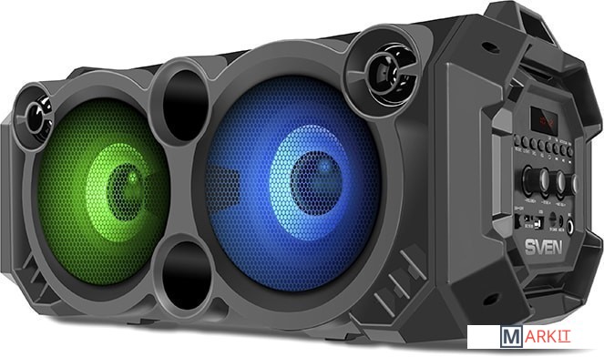 Беспроводная колонка SVEN PS-550 с разноцветной подсветкой работает в нескольких режимах выбирайте тот, который вам нравится. Аудиосигнал передается по Bluetooth, а выходная мощность системы 36 Вт. Ёмкость аккумулятора - 4 000 мАч (2000 мАч x2). На корпусе есть гнездо для подключения микрофона с функцией эхо. То есть теперь, отправляясь на природу, вы не только можете взять с собой любимую музыку, но и спеть вместе с друзьями как в настоящем караоке-клубе! Воспроизведение музыки возможно с USB flash и microSD карт памяти, а также с помощью аудиокабеля от любого источника звука.