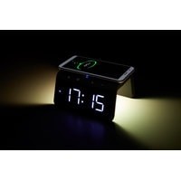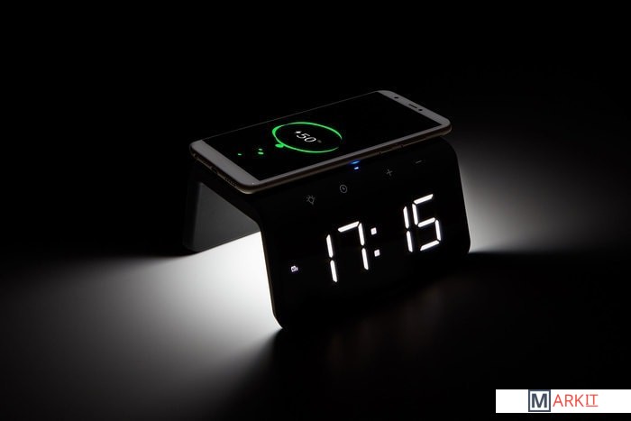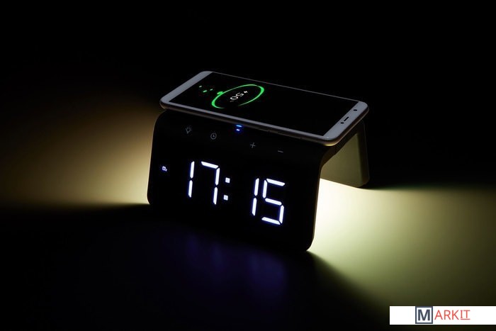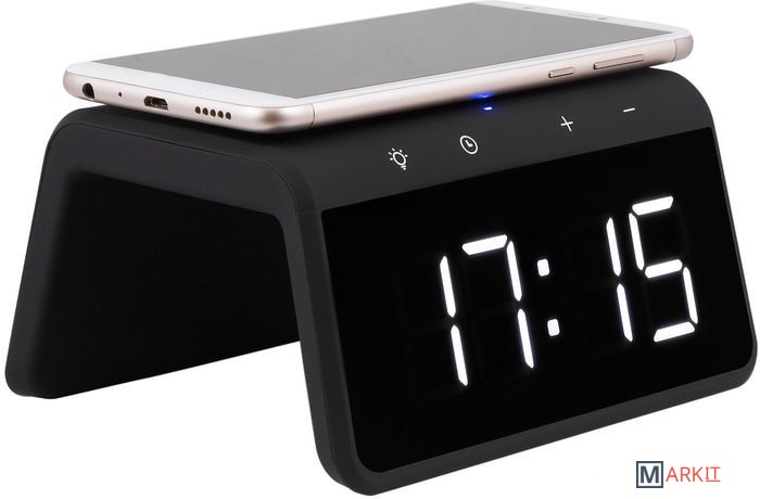 Быстрая беспроводная зарядка с часами-будильником и ночником – стильное, современное и многофункциональное устройство, совмещающее в себе функции беспроводной зарядки и часов с будильником. Корпус из софт-пластика приятен не только на ощупь, но и визуально.УДОБНО:Модель оборудована цифровым дисплеем с хорошо различимыми символами и трехуровневой регулировкой яркости экрана. Наличие LED ночника белого цвета с тремя режимами яркости, который при необходимости можно включить/выключить. Наличие RGB подсветки (7 цветов). Стильно выполненные подсвечивающиеся сенсорные кнопки управления на лицевой панели. А также наличие дополнительно разъема USB для зарядки других устройств (5V 1A). ЗАРЯДКА МОБИЛЬНЫХ УСТРОЙСТВ:Избавьтесь от лишних проводов, просто положив свой девайс на плоскую панель устройства, если он поддерживает беспроводной стандарт Qi.ЧТОБЫ НЕ ПРОСПАТЬ:Установите два будильника, которые помогут проснуться утром именно тогда, когда нужно и не опоздать на работу или важную встречу.Требуется адаптер питания стандарта QC 2.0 и выше (в комплект не входит).