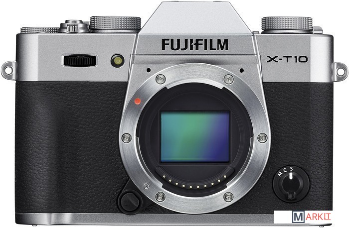 Компактная любительская беззеркальная камера. Отличается из всей линейки Х-серии более доступной ценой. В фотоаппарате используется 16.3 Мп. матрица APS-C X-Trans CMOS II со встроенной системой автофокусировки с фазовой детекцией и процессор EXR II. Диапазон светочувствительности ограничен значениями ISO 200-6400. К важным достоинствам относится высокая скорость работы автофокуса. На фокусировку камера затрачивает 0.06 с. Скорость непрерывной съемки достигает 8 кадров в секунду. Х-Т10 может снимать видео в формате Full HD со скоростью 60 кадров/с. Предусмотрен встроенный модуль Wi-Fi. Комплект без объектива.