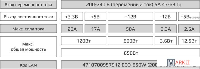Технические характеристики блока питания
