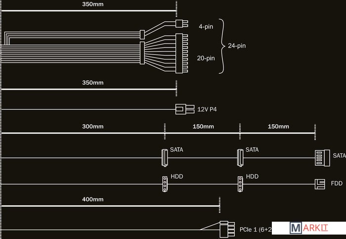 | Модульное подключение кабелей питания | ✘ |