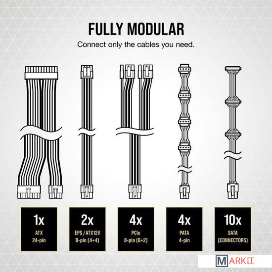 | Модульное подключение кабелей питания | ✔ |