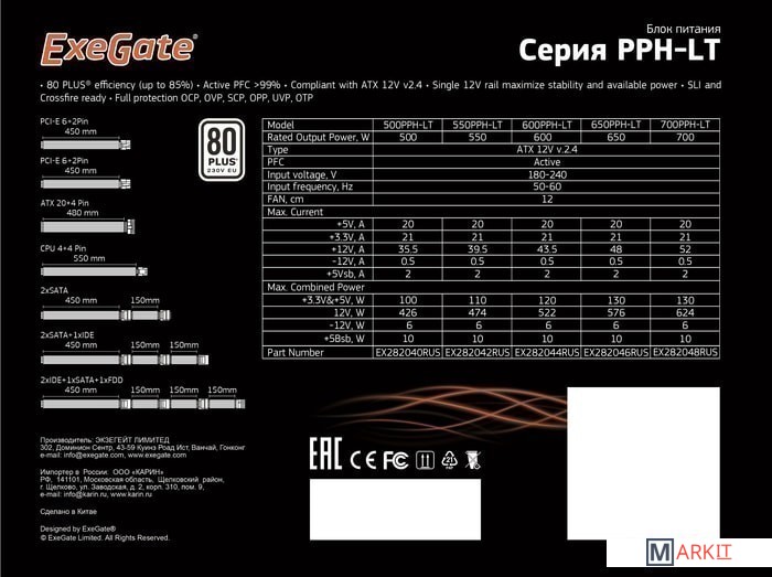 Markit » Блоки питания » Блок питания ExeGate 700PPH-LT 80 Plus EX282048RUS