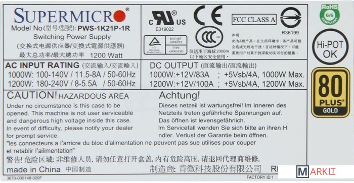 Markit » Блоки питания » Блок питания Supermicro PWS-1K21P-1R