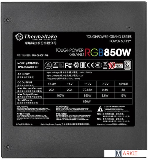 Markit » Блоки питания » Блок питания Thermaltake Toughpower Grand RGB 850W Platinum PS-TPG-0850F1FAPx-1