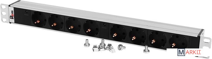 Блок силовых розеток имеет восемь портов стандарта Schuko, выполнен в анодированном алюминиевом корпусе. Розетки расположены горизонтально, для удобного подсоединения коленчатых штекеров. На лицевой части блока установлен индикатор. Вход кабеля питания - клемная колодка. Кабель питания в комплект поставки не входит. Совместим со всеми линейками 19” монтажного оборудования. Поставляется в индивидуальной упаковке с комплектом крепежа.