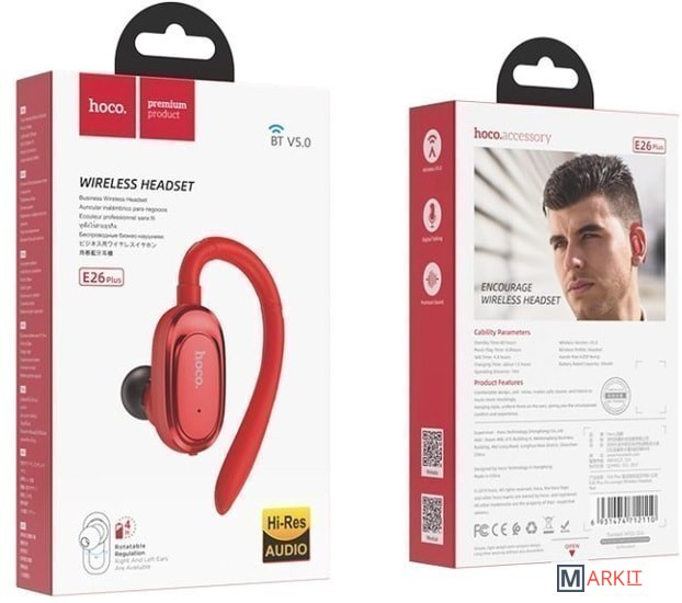 Markit » Bluetooth-гарнитуры » Bluetooth гарнитура Hoco E26 Plus (красный)