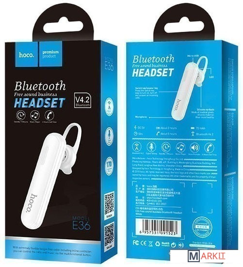 Markit » Bluetooth-гарнитуры » Bluetooth гарнитура Hoco E36 (белый)