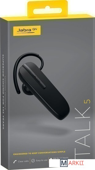 Гарнитура Jabra Talk 5, Кабель микро-USB, 1 гелевый ушной вкладыш EarGel, 1 наушное крепление EarHook, Краткое руководство пользователя |