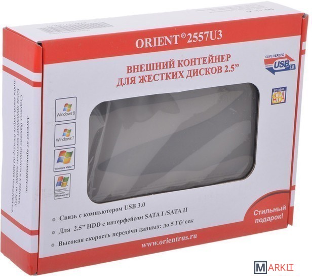 Markit » Боксы для накопителей » Бокс для накопителей 2.5" Orient 2557U3