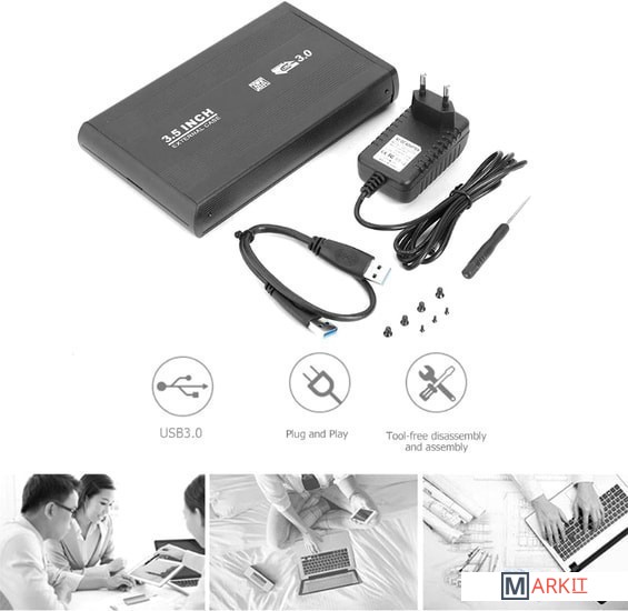 Markit » Боксы для накопителей » Бокс для накопителей 3.5" USBTOP SATA – USB3.0 (черный, с блоком питания)
