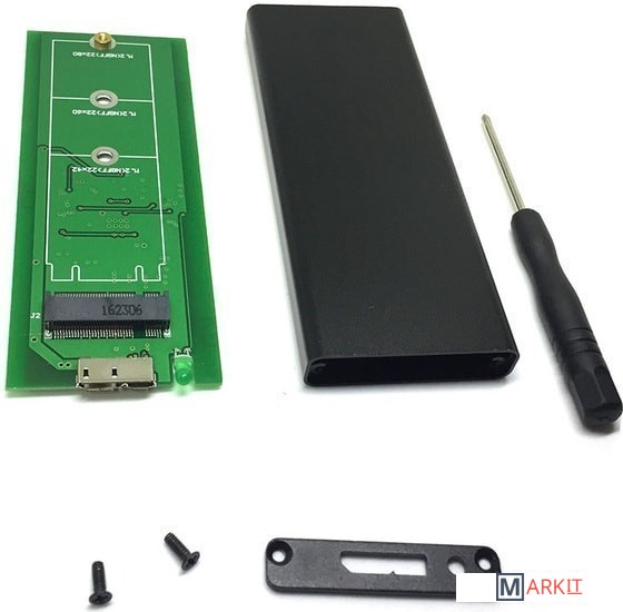 Внешний корпус, предназначенный для подключения дисков M.2 (NGFF) SSD к компьютеру, ноутбуку и т.д., имеющим разъём USB.