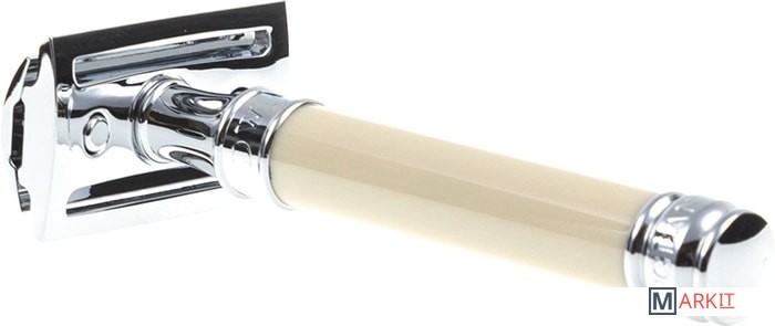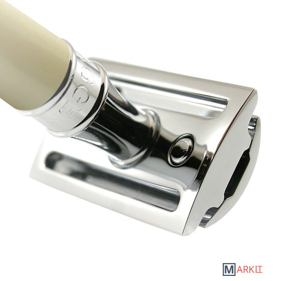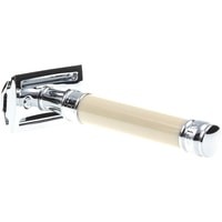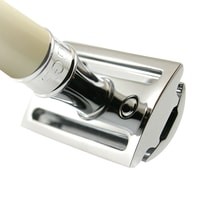 Элегантный традиционный станок с ручкой цвета слоновой кости. Бритва с закрытым гребнем и состоит из трех частей. Красивого внешнего вида бритве предоставляют хромированные элементы. Бритва предназначена для ежедневного бритья. В комплект входит одно бесплатное лезвие Feather.