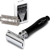Премиальный т-образный станок Chatsworth английского бренда Edwin Jagger с ручкой из смолы цвета черной смолы. Все металлические элементы бритвы сделаны из высококачественной нержавеющей стали и покрыты хромом для придания блеска и дополнительной долговечности. Поставляется в фирменной упаковке Edwin Jagger, с 5-ю лезвиями.