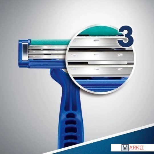 Blue Simple3 — высокоэффективная одноразовая мужская бритва, которая имеет 3 независимо подвешенных лезвия, обеспечивающих гладкое и комфортное бритье. Благодаря открытой архитектуре бритву легко промывать.Смазывающая полоска обеспечивает гладкое скольжение, а защитные микрогребни помогают натянуть кожу и подготовить волоски к срезанию. Прорезиненная ручка и зафиксированная головка обеспечивают превосходный контроль.Обеспечит Вам гладкость кожи, заметную для окружающих, н не нанесет урона вашему бюджету.