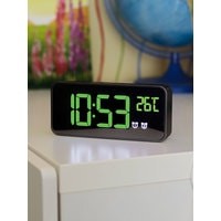 Особенности:— Современный дизайн— Возможность работы от аккумулятора/USB/сети— Яркие, заметные издали цифры— Регулируемая яркость— Запоминание настроек при отключении питания— Качественный приятный звук будильника— Встроенный термометр