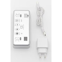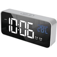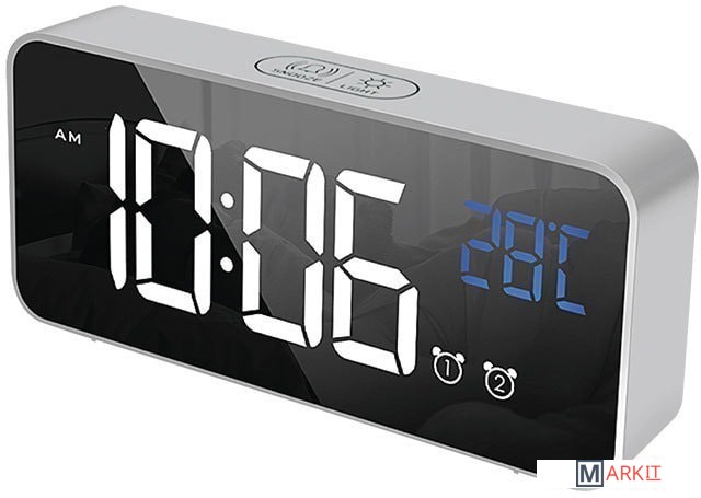 Особенности:— Современный дизайн— Возможность работы от аккумулятора/USB/сети— Яркие, заметные издали цифры— Регулируемая яркость— Запоминание настроек при отключении питания— Качественный приятный звук будильника— Встроенный термометр