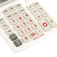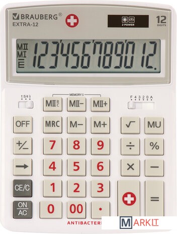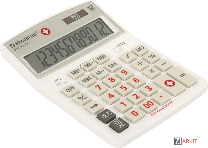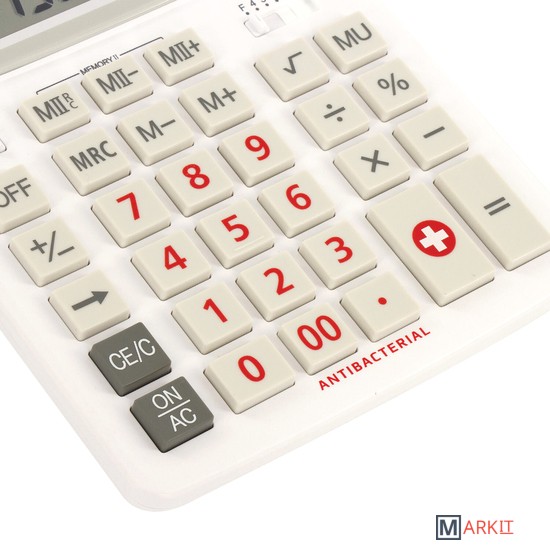 Большой дисплей с увеличенным углом обзора, устойчивый корпус и клавиатура с цветной дифференциацией для эффективной работы с максимальным комфортом.Встроенный аккумулятор и солнечная батарея позволяют калькулятору работать при любом освещении, а клавиша выключения OFF и функция автоматического отключения (через 8-10 минут бездействия) позволяют максимально продлить срок его службы без замены батареи.Антибактериальный компонент — смесь ионов серебра и цинка, содержащийся в пластике, препятствует распространению бактерий на поверхности калькулятора.