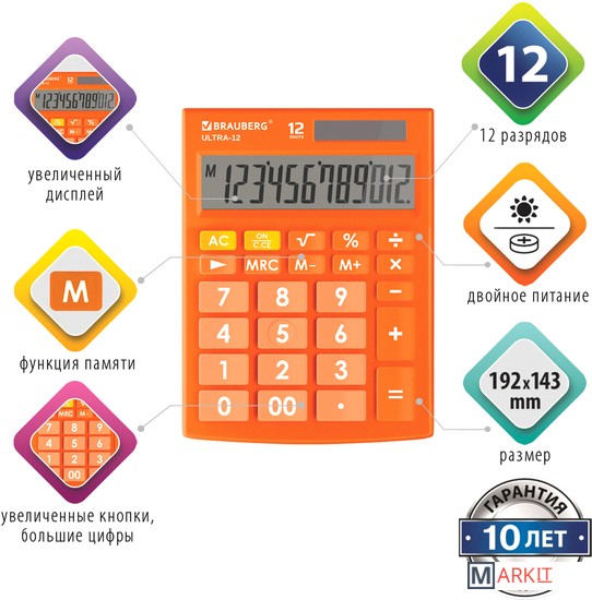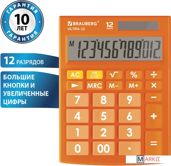 Markit » Калькуляторы » Бухгалтерский калькулятор BRAUBERG Ultra 12-RG 250495 (оранжевый)