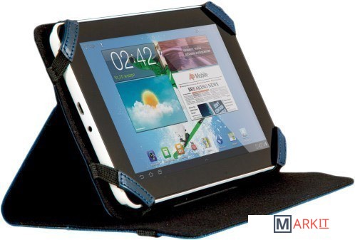 Легко превращается в подставку с несколькими возможными углами обзора - для просмотра видео или набора текста.Широкий эластичный ремешок надёжно закрывает чехол.Резиновые уголки прочно удерживают планшет на месте.Имеет мягкую внутреннюю подкладку.Защищает от повреждений, ударов и царапин.