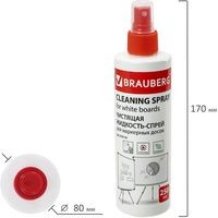 Чистящая жидкость-спрей BRAUBERG предназначена для очистки поверхности маркерных досок.Удаляет следы сухого маркера, пыли, отпечатков пальцев и других загрязнений, а также дезинфицирует поверхность.Спрей имеет объем 250 мл. Подходит для ежедневного применения. Обладает антистатическим эффектом. Рекомендуется к использованию вместе с сухими стирающими салфетками.