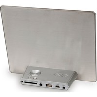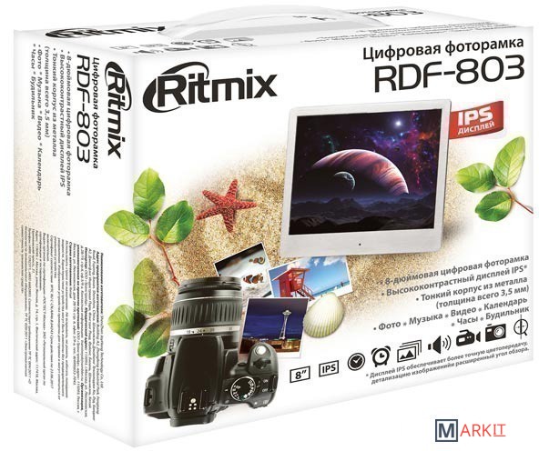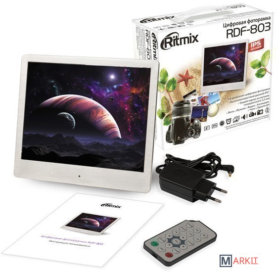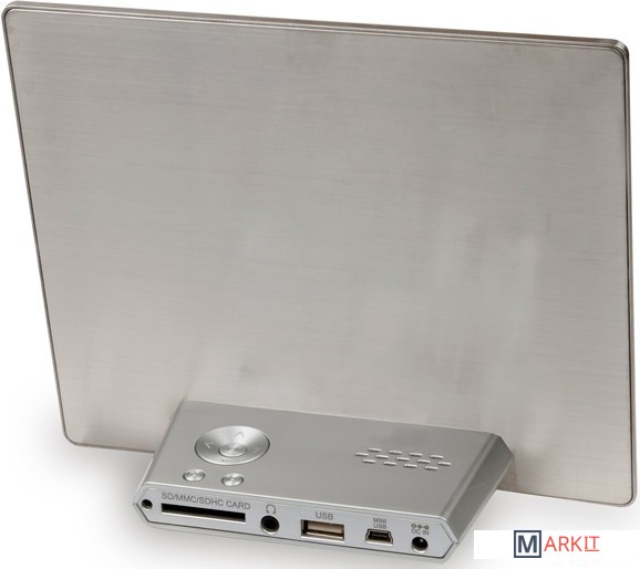 Цифровая фоторамка в тонком металлическом корпусе, позволяющая демонстрировать изображения различных форматов без использования компьютера, а также воспроизводить мультимедийные файлы. Устройство оснащено IPS-дисплеем. Предусмотрены функции календаря, часов и будильника.