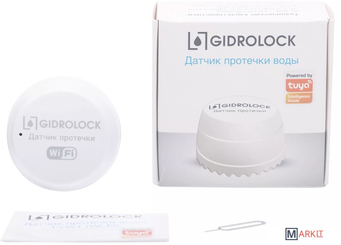 Беспроводной датчик протечки GIDROLOCK TYW1 Wi-Fi предназначен для обнаружения утечки токопроводящих жидкостей (водопроводная вода, растворы солей и др.). При обнаружении протечки датчик начинает издавать звуковой и световой сигналы, передает сигнал аварии по радиоканалу Wi-Fi в сеть Интернет и извещает пользователя через мобильное приложение. Работает на платформе Tuya, с помощью мобильного приложения. Время работы на одном элементе питания: 1,5 года.Питание: = 3 В, CR123A LithiumТок покоя / тревоги: 10 мкА / 75 мАЧастота радиосвязи Wi-Fi: 2.4 ГГцСтепень защиты корпуса: IP20Метод установки: размещение на полуТемпература эксплуатации: от -10 °C до 50 °CТемпература хранения: от -40 °C до 60 °CОтносительная влажность: до 95%Время работы на одном элементе питания: 1,5 года.