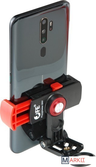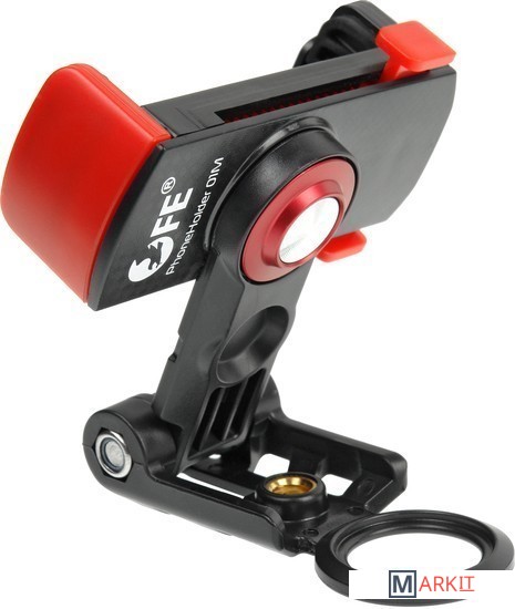 Компактный многофункциональный держатель для смартфона, камера которого используется для фото- или видеосъемки. Наклон держателя регулируется в пределах 180°, а ориентация камеры меняется бесступенчато, может быть вертикальной или горизонтальной направленности.Держатель Falcon Eyes PhoneHolder 01M помогает быстро установить смартфон и направить камеру для съемки фото и видео, или просто использовать, как подставку для чтения и просмотра видео на экране устройства.Два отверстия с резьбой 1/4" позволяют присоединить держатель к стойке, ригу, штативу, моноподу (с соответствующей резьбой) и установить дополнительные аксессуары на держателе, такие как накамерный микрофон, небольшой осветитель и т.д. Для удержания держателя в руке предусмотрено специальное кольцо.Зажим с регулируемой лапкой, фиксатором и резиновыми вставками рассчитан на смартфоны шириной от 56 до 86 мм. Нескользящие резиновые вставки предотвратят выпадение мобильного устройства из держателя и предохранят корпус от царапин.