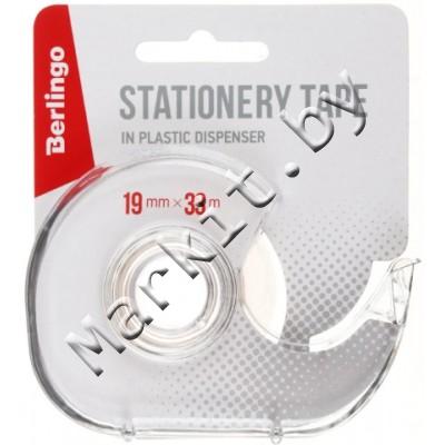 Диспенсер для клейкой ленты канцелярской с лентой Berlingo, 100 x 70 x 25 мм, для ленты шириной 19 мм, прозрачная Код: 33309