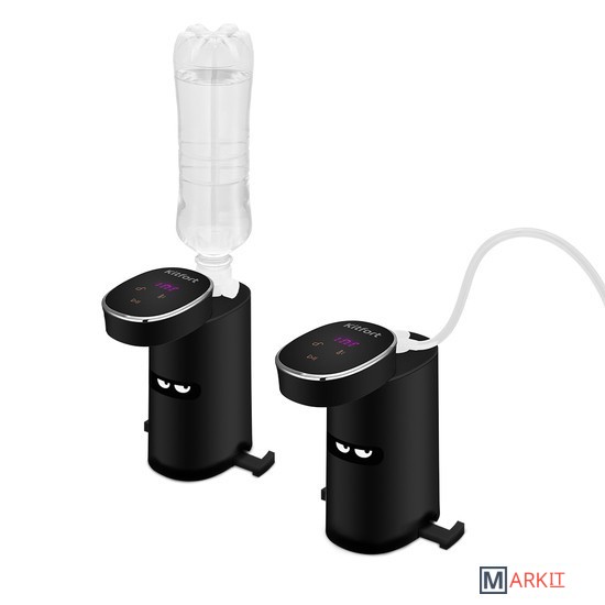 Термопот КТ-2509 служит для моментальной подачи воды заданной температуры без предварительного подогрева и ожидания. Подогрев осуществляется проточно, подача воды начинается примерно в течение одной-пяти секунд после нажатия кнопки.У термопота есть три насадки, с помощью которых он может забирать воду для последующего её подогрева: адаптер для бутылок с водой диаметром 28 и 30 мм и насадка-шланг для любых ёмкостей с водой.Функция блокировки панели управления не позволит получить ожог при случайном нажатии или испортить.Выдвижные ножки не дают прибору опрокинуться во время работы с установленной бутылкой.