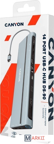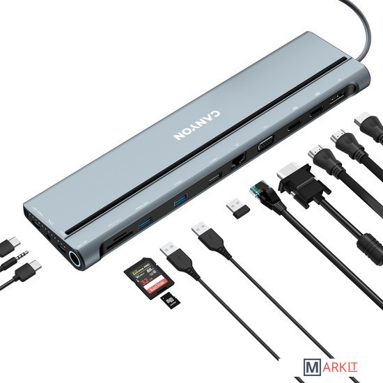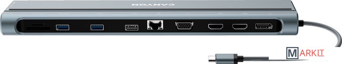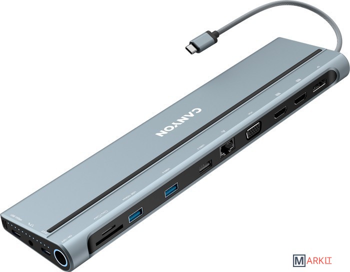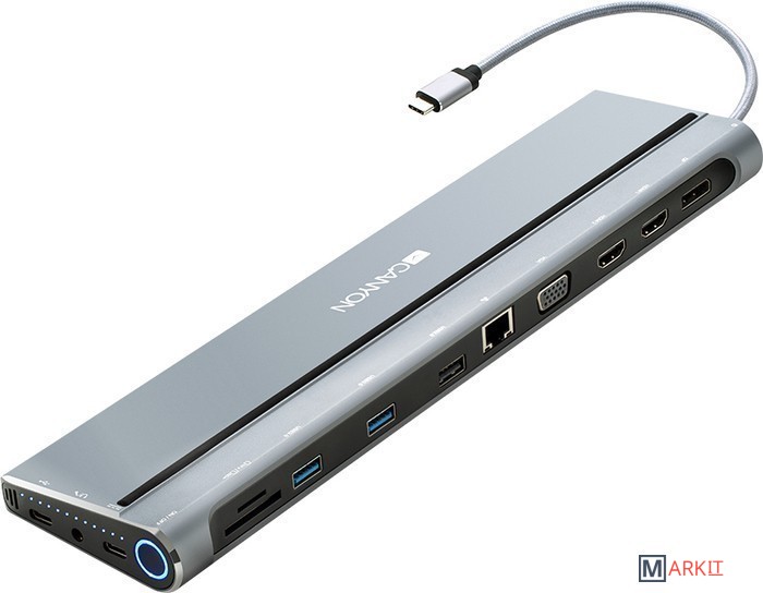 Если ваш ноутбук оснащен USB type-C, эта универсальная док-станция CNS-HDS90, являющаяся 3-им поколением популярной модели, расширит его возможности до максимума с помощью 14 встроенных интерфейсов. Через док-станцию к вашему ноутбуку можно подключать 4 монитора одновременно с помощью разъемов Display Port (4Kx60Гц) и VGA.Разъем для зарядки USB-C PD мощностью до 100 Вт позволяет заряжать подключенное устройство с оптимальной скоростью. Кроме того, в док-станцию Canyon HDS90 встроено комбинированное 3,5-мм аудиогнездо для наушников и микрофона, кардридер SD и TF-карт, Ethernet для бесперебойного интернет-соединения и USB-С 3.2 Gen 2 для быстрой передачи данных. Док-станция 14-в-1 CNS-HDS90 станет современным и стильным гаджетом на вашем рабочем столе.
