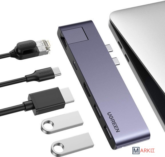 Поддержка чтения 2 карт одновременноВыход HDMI 1080PПоддержка зарядки PD 100 ВтУльтратонкий концентратор USB C предназначен для MacBook Air 2018/2019/2020, MacBook Pro 13.3/15.4/16 с 2020/2019/2018/2017/2016. Концентратор USB-C 5 в 1 с гладкой алюминиевой отделкой цвета «космический серый» идеально дополняет аксессуары Macbook.Thunderbolt 3 хаб поддерживает видеовывод в максимальном разрешении 8K, зарядку PD 100 Вт через USB C порт для питания Macbook, скорость передачи данных до 10 Гбит/с на устройства с поддержкой USB 3.1 Gen 2. Делайте все необходимое с помощью порта будущего.USB C - HDMI порт поддерживает видеовывод в разрешении 4K@30 Гц на внешний дисплей, HDTV, проектор, монитор для дублирования изображения на большой экран.USB C хаб-адаптер с двумя дополнительными USB 3.0 портами позволяет подключать к последней модели Macbook Pro/Air больше USB-устройств, таких как мышь, клавиатура, жесткий диск USB, накопитель с максимальной скоростью передачи данных до 5 Гбит/с.Ультратонкий и портативный адаптер можно носить в сумке, удобно использовать во время поездок. Подключайте и используйте. Алюминиевый корпус хорошо отводит тепло. UGREEN USB C хаб идеально подходит к вашему Macbook Pro и обеспечивает высокую производительность.Совместимые модели Macbook:MacBook Pro 16" 2019MacBook Pro 13'' 2016 / 2017 / 2018 / 2019 / 2020MacBook Pro 15'' 2016 / 2017 / 2018 / 2019MacBook Air 2018 / 2019 / 2020