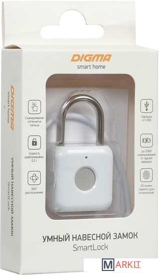 Замок электромеханический со встроенным сканером отпечатка пальца. Поддерживается до 20 ячеек памяти для разных пальцев. Прочный металлический корпус надёжно защищает замок от внешних воздействий и возможности взлома.